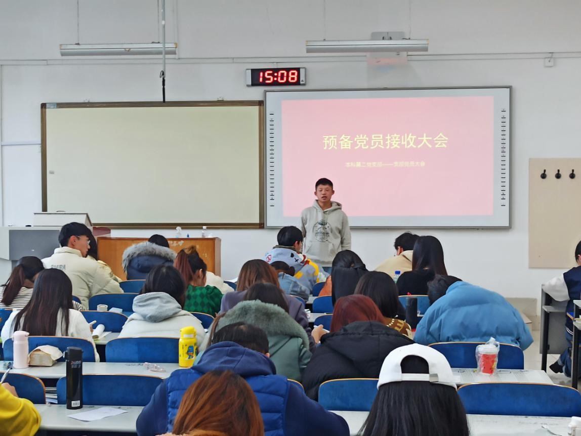 会议严格按照党组织接收预备党员程序,首先由各位党员发展对象汇报个人情况。李佳迎等26名同志分别向党组织进行汇报,汇报的内容主要包括对党的认识、入党的动机、本人履历、现实表现、家庭主要成员和主要社会关系情况,以及需要向党组织说明的其他问题。随后由入党介绍人介绍培养考察情况,全体党员讨论并发表意见,投票表决接收预备党员。