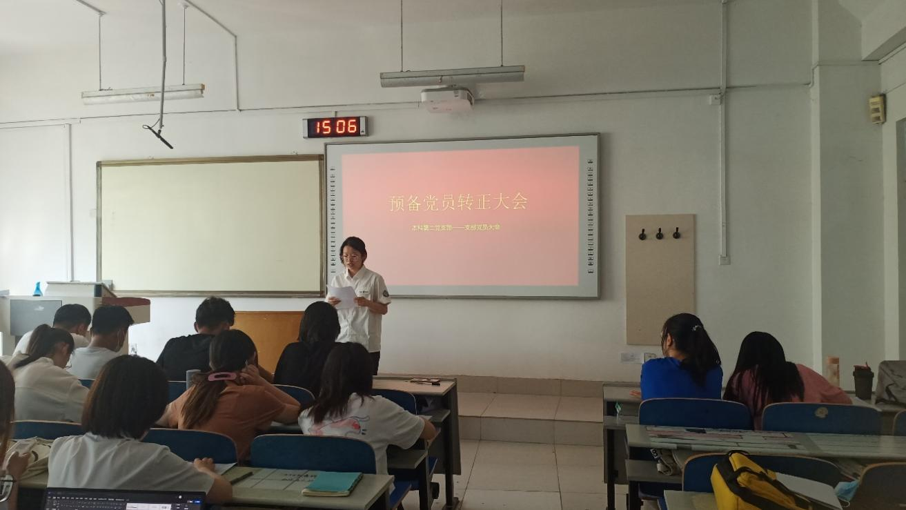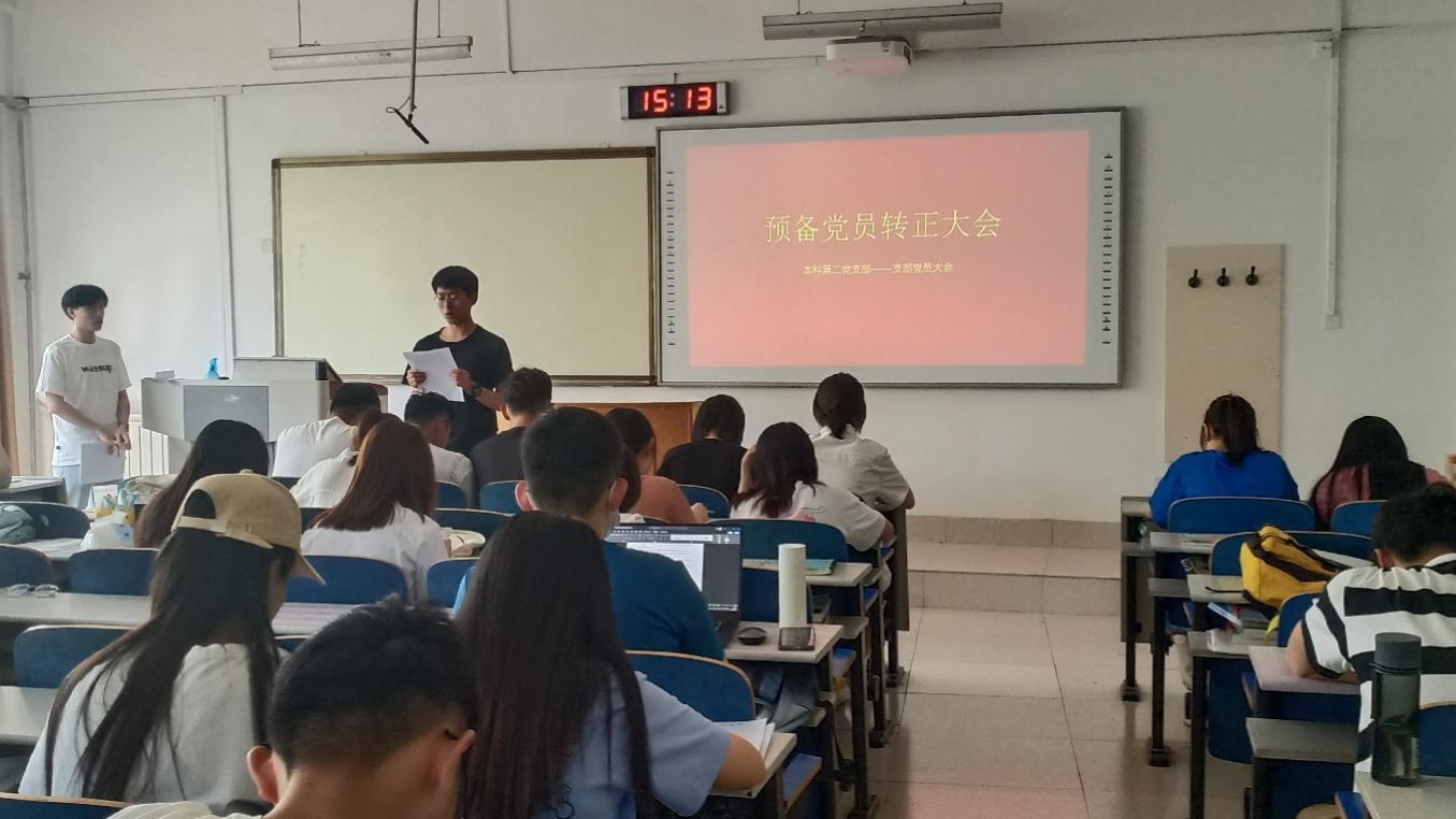 会议严格按照党组织预备党员转为正式党员的程序。首先由各位已满预备期的预备党员宣读转正申请书,李文鹏等7位预备党员分别进行申请书宣读流程,宣读内容包含了预备期在政治思想、理论学习方面的进步和表现,在预备期间努力提高思想政治觉悟,不断增强党性锻炼,认真学习党的方针政策与理论知识。随后由入党介绍人介绍各位预备党员在预备期间的表现情况,由预备党员的培养考察人介绍预备党员在预备期间的教育和考察情况。经全体党员共同讨论并发表意见,以及党支部大会讨论后,投票表决转为正式党员的同志。
