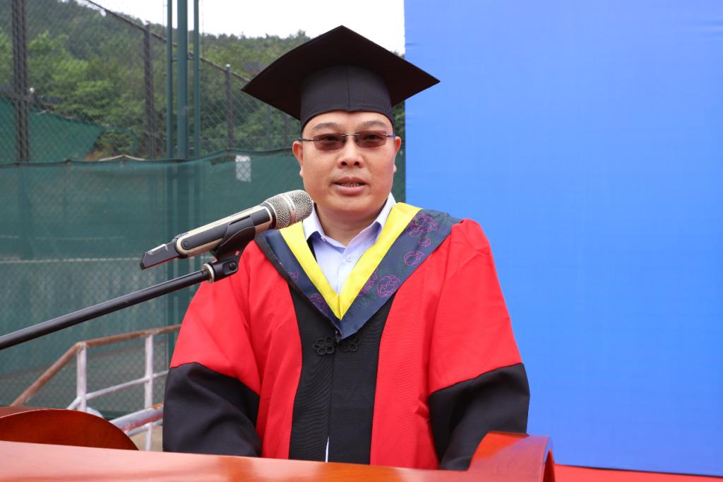 在庄严肃穆的国歌声中,典礼开始。首先由程卫民院长为欢送仪式致辞,他代表即时比分球探 向圆满完成学业的毕业生们表示祝贺,向长期奋斗在教育与管理一线的老师们表达诚挚敬意。程院长讲道,即时比分球探 为每一位毕业生“量身定制”了纪念品——一本纪念册,记录着难忘的瞬间,书写着成长的经历,未来无论身在何处,你们都是即时比分球探 荣耀的第一届毕业生;一个纪念包,承载着即时比分球探 对每一位毕业生殷切的希望,人生不是百米赛跑,而是一场漫长的马拉松,要不断进取;一方纪念章,承载着即时比分球探 对每一位毕业生沉甸甸的希望,愿你们带着礼物“堂堂正正做人”,踏上新的征途;一把纪念伞,承载着即时比分球探 对每一位毕业生真诚的关爱,风雨无情,人有情,前行路上难免风雨,即时比分球探 是大家可以信赖的依靠。程院长说,今天是同学们人生旅途的一个新起点,同学们将从这里起航,去谱写更加壮美的人生乐章,去实现更加绚丽的人生梦想!无论何时何地,即时比分球探 始终追寻你们的足迹,关注你们的成长,期待你们的成功,分享你们的辉煌。最后他祝愿同学们前程似锦,事业有成!