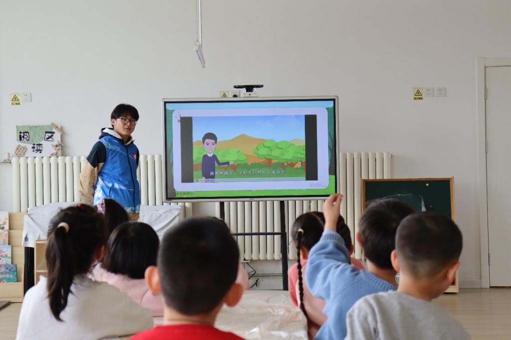志愿者们通过幻灯片展示和视频讲解的方式,生动地向孩子们介绍了植树节的历史背景以及树木生长对地球生态系统的贡献;知识问答环节将现场氛围推向高潮,孩子们积极参与环保知识竞赛,争先举手抢答问题,“树木是地球的肺,能为我们净化空气!”一名小朋友大声说道。