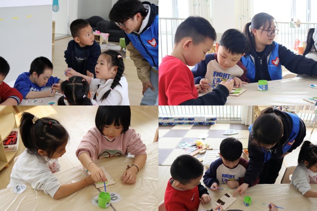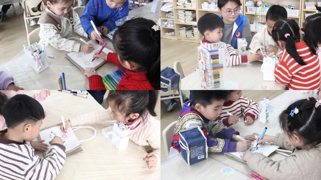 孩子们在志愿者的帮助下,还开展创意手工活动,利用颜料在环保袋上创作以“绿色地球”为主题的画作,用想象力绘就绿色家园。孩子们亲手制作精美的树牌,一笔一画写下:“小树要喝水,我来保护你”的标语,用童趣盎然的笔触书写对“爱护环境,人人有责”的责任与担当。