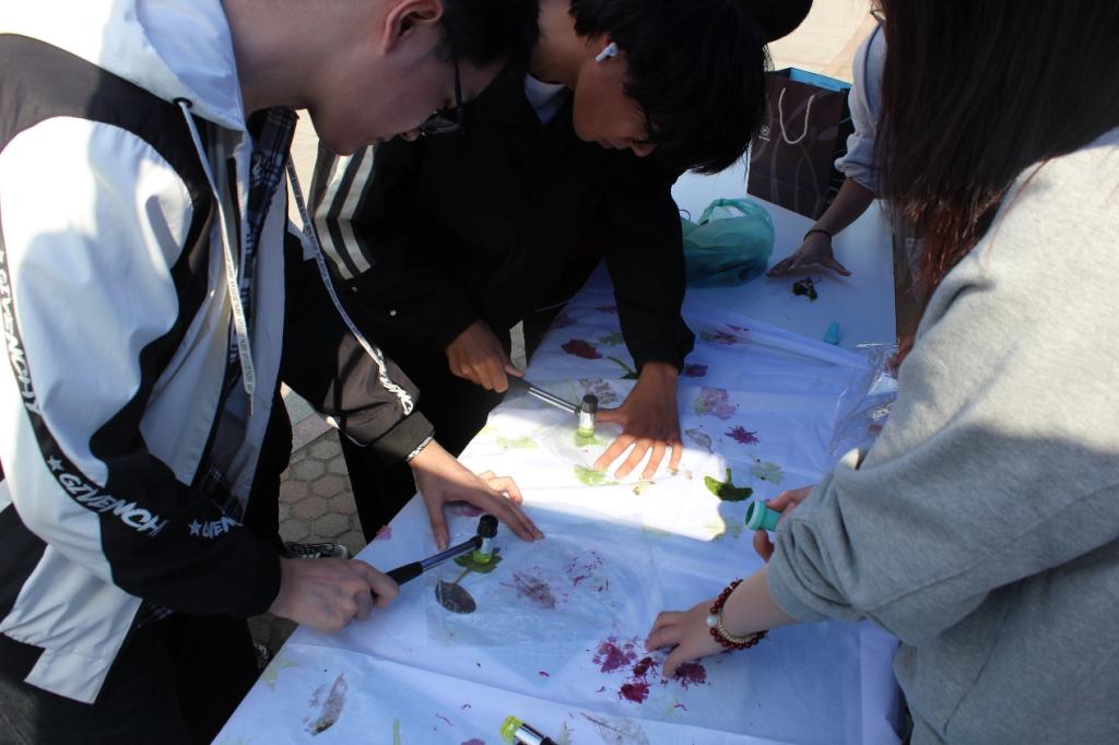 活动通过五大特色项目将传统技艺与互动体验有机融合,展现文化传承与创新活力。“踏春飞花”以飞花令接龙为载体,让参与者在诗词品鉴中感受古人春日情怀;“投壶雅集”复原传统宴饮礼仪,通过执矢投壶展现古代竞技风采;“庄生梦蝶”巧妙结合《庄子》典故与你画我猜互动形式,在趣味游戏中传递哲学智慧;“漆扇绘春”依托传统漆艺技法,引导学生以漆为墨、以扇为纸创作春日画卷;“草木拓染”通过植物敲拓工艺,将自然纹理定格于织物,展现生态美学意趣。2024级安全工程专业学生李佳丽在活动结束后说道:“通过参加活动,我深刻体会到了古人的智慧和传统文化的魅力,也增强了我保护、传承非物质文化遗产的意识。”
