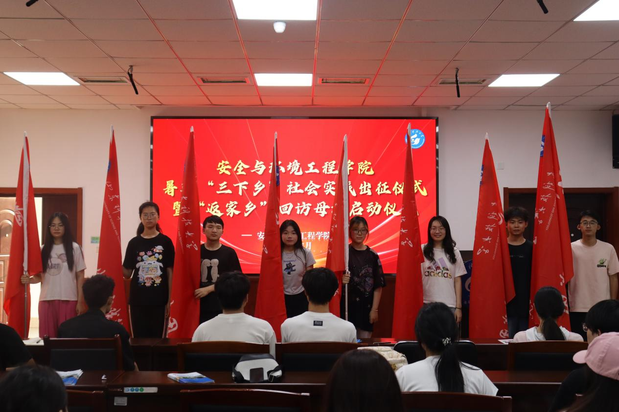张娜为各实践队授旗,并预祝同学们实践任务顺利开展。