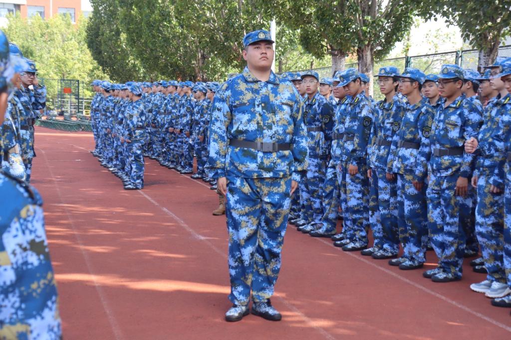 “调整军姿!”口令一下,全体同学迅速响应。收腹、挺胸、抬头、身体前倾……动作干净利落,眼神毅然坚定。阳光掠过帽檐,汗水自眉间滑落,但没有人擦拭,更无人松懈。他们双臂紧贴裤缝,手指绷直,如钢钉般屹立于训练场,展现出军人般的顽强作风。