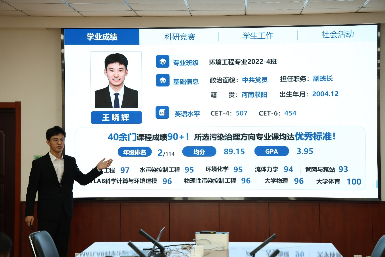14位候选人依次登台,围绕学业成绩、思想动态、实践成效、文体活动与科研成果等多个方面展开陈述,全面展示个人风采与综合实力。来自2022级环境工程4班的王晓辉凭借其优异的学业成绩、突出的科研竞赛成果与全面的社会服务,赢得了广泛赞誉;2022级安全工程2班的汪衢一直秉持着以脚步丈量祖国大地的誓言,三年的奔跑将汗水泼洒在山科的各个角落,也成就了他“文明其精神野蛮其体魄”的誓言。14位学子的出色表现勾勒出新时代青年学子的昂扬风貌。