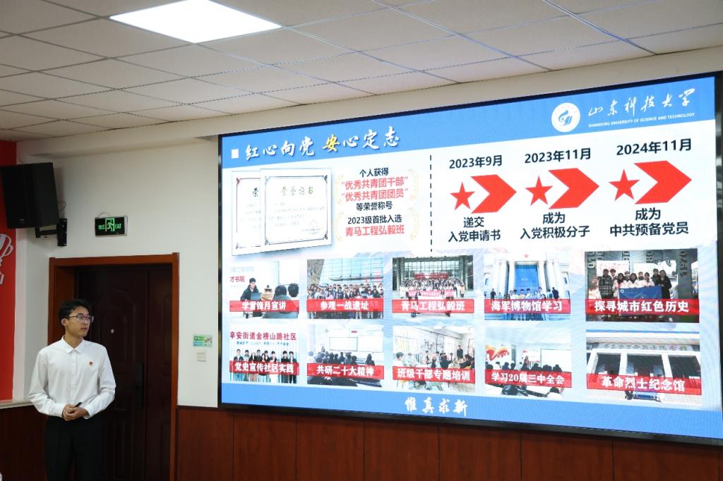 8位候选人依次登台,围绕思想政治、学业成绩、科研创新、社会实践及学生工作等方面,以沉稳自信的表达,系统回顾了大学阶段的成长轨迹与丰硕成果。来自2022级安全工程1班的张皓宇全方面展示了大学三年取得的优秀成绩,其出色表现赢得了现场评委老师的一致认可;2022级环境工程4班的游思源凭借突出的科研与竞赛成果,展现了环境学子扎实的学术素养;2023级安全工程1班的崔柏闻在学生工作与社会实践方面表现卓越,给在场师生留下了深刻印象。整场答辩既是对过往努力的总结,更是面向未来的宣言。