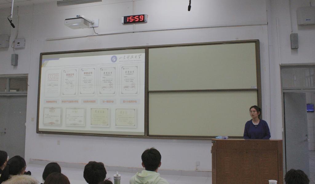 姜逸飞分享了自己大学期间的基本情况,并从日常学习、目标方向、推免政策、学术成绩、科研经历等各方面展开,详细讲解了不同环节时期的注意事项,姜逸飞表示:保研不是一朝一夕的事情,需要同学们早下手、早准备、勤积累,希望同学们都能为了自己的理想而不懈努力。孙悦从保研面试的角度给同学们介绍了相关的经验技巧,如何有针对性地面向不同学校、不同专业做专项准备,如何高效快速掌握专业课知识,如何加深面试官对同学的第一印象……分享的内容细致入微,让同学们对保研面试有了更加深入的了解。安全工程2023-1班崔柏闻同学说:“学长学姐们不仅详细阐述了保研的各项政策与流程,还无私分享了他们在准备保研过程中的心得体会与策略方法,为我们未来的学习生活指明方向,真的受益匪浅。”