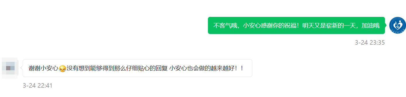 为确保回信质量和专业性,活动采取审核制。志愿者在回信过程中,治愈了他人,也治愈了自己,收获别样的感动,发自内心的回信倾诉者豁然开朗使他们感受到被关注、被理解。促使他们学习生活中积极向上,面对情感时理性勇敢,遭遇挫折时不轻易言败,对未来充满希望与向往。即时比分球探 心健联也会继续将这份爱与希望传递下去,温暖更多同学的心扉(何梓萌,杨婷淑