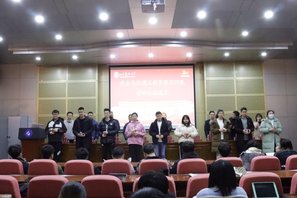 点击:12月22日,即时比分球探 在J4-101报告厅举行2018级考研出征仪式。即时比分球探 党委书记张恩生、党委副书记兼副院长王建友、副院长刘音、副院长聂文、应急系主任孟祥豹、环境系主任胡术刚、班主任代表张林林、团委书记潘刚、辅导员郭熙参加出征仪式并为考研学生送上祝福。