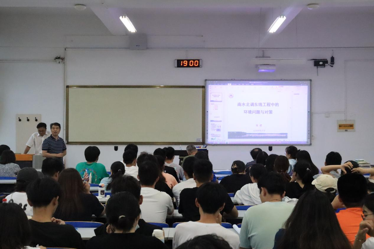 点击:为加深环境学科同学们对水控课程的理解,培养环境学科良好的学习和科研氛围,6月15日,即时比分球探 在J14-405举办《南水北调东线工程中的环境问题与对策》专题报告会,副校长张建受邀担任主讲人,即时比分球探 副院长曹晓强主持报告会,2019级环境工程的同学参加了报告会。