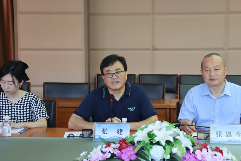 在奖学金捐赠仪式上,张恩生书记代表学院接受于伟总经理捐赠,张建副校长代表学校向于伟总经理回赠捐赠证书。