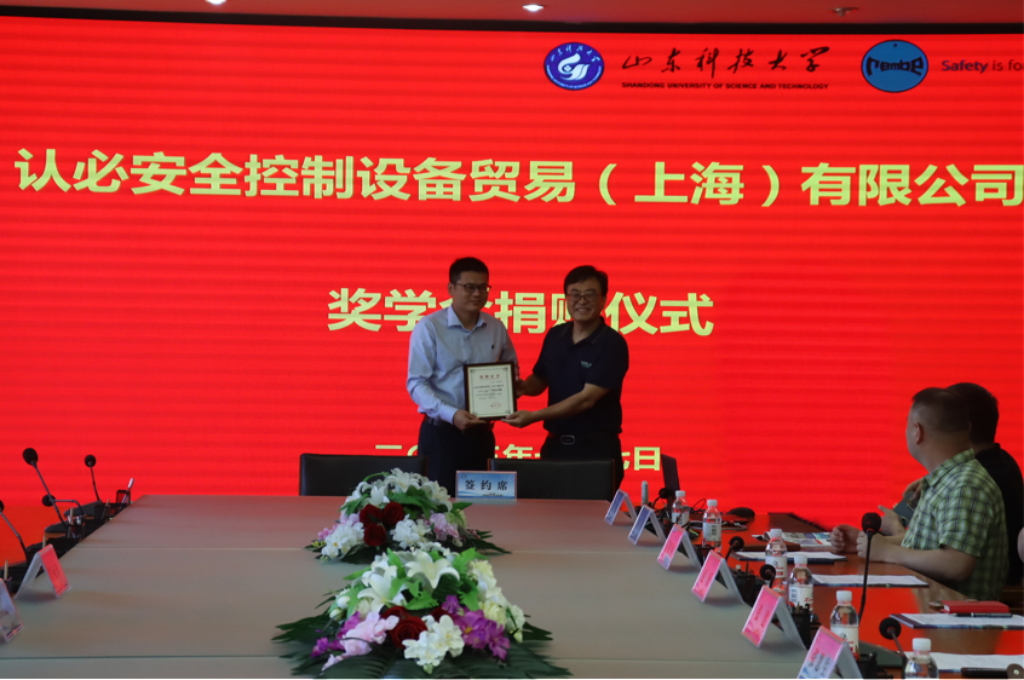 点击:7月7日上午9:00,认必安全控制设备贸易(上海)有限公司奖学金捐赠仪式在j4-322会议室举行。认必安全控制设备贸易(上海)有限公司董事长Niklas Kitzhöfer、总经理于伟、销售经理陈永洋、经理于开明,山东科技大学副校长张建、合作发展处基金会办公室主任赵珊、即时比分球探 党委书记张恩生、党委副书记兼副院长王建友、副院长周刚、科研秘书张琦,储能技术即时比分球探 直属党支部书记秦晓钟、直属党支部副书记兼副院长汪国庆、直属党支部委员于昊,参加了本次捐赠仪式。本次仪式由即时比分球探 党委副书记王建友主持。