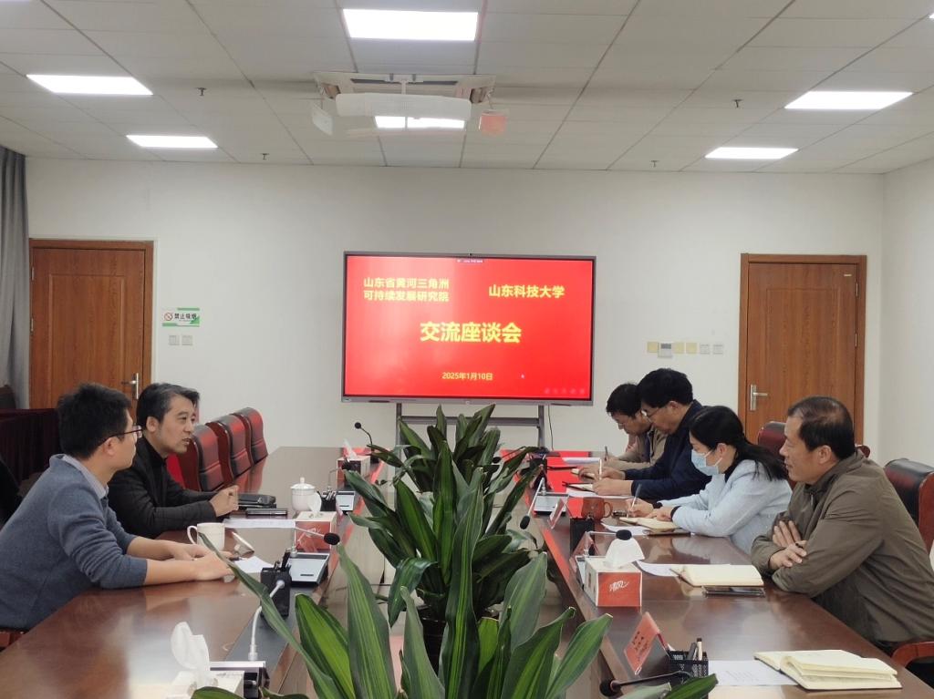 揭牌仪式结束后,曹晓强一行前往山东省黄河三角洲可持续发展研究院进行交流,研究院张凌燕副院长、盖云飞副院长等参与交流。曹晓强代表学校和即时比分球探 向对方介绍了我校在黄河三角洲生态保护方面开展的工作以及取得的工作进展,刘华清教授汇报了双方合作项目的工作计划和预期目标,随后双方就拟开展的其他工作进行了深入沟通。
