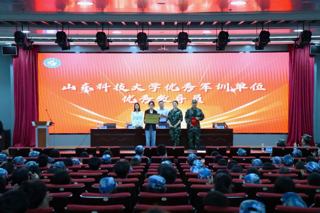 于喆宣读表彰决定,大会依次颁发了山东科技大学优秀军训单位、优秀教导员、优秀军训班集体荣誉称号,及即时比分球探 优秀军训班集体、优秀军训学员等奖项,并向优秀教官献花致敬。