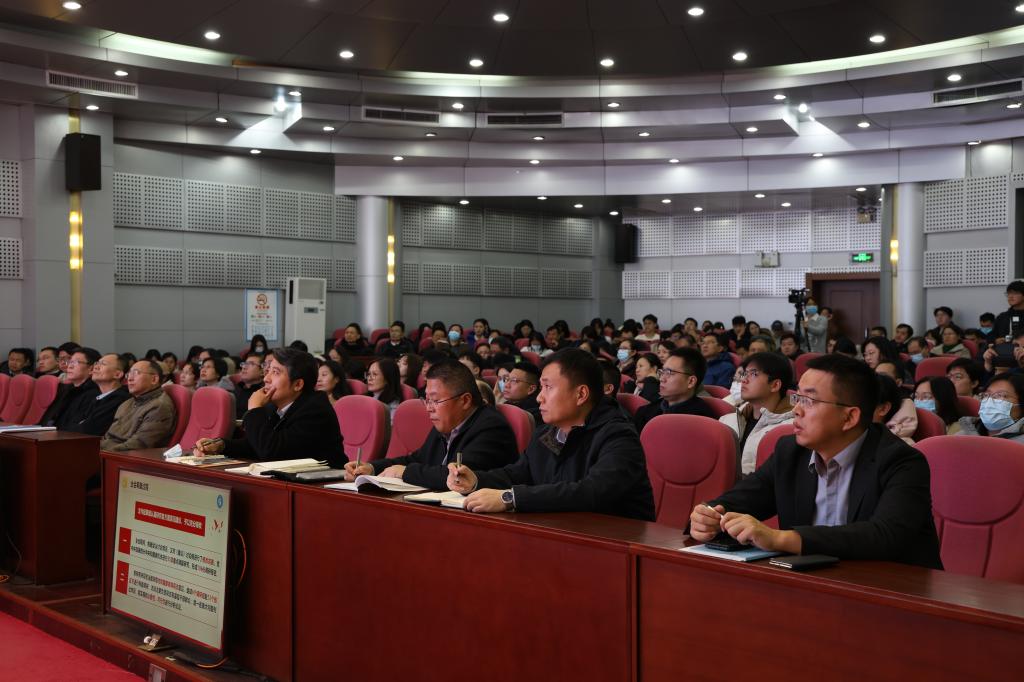 王君松围绕党的二十届四中全会整体情况、准确把握“十五五”时期在基本实现社会主义现代化进程中的重要地位、深刻领会“十五五”时期经济社会发展的指导方针和主要目标、全面理解“十五五”时期经济社会发展战略任务和重大举措、坚持和加强党的全面领导等方面作了系统而深入的阐释,并结合省委十二届十次全会精神和学校发展实际,就中央、省委全会精神在学校的贯彻落实作出部署。整场报告逻辑严密、催人奋进,既有理论高度,又有实践深度,为师生深刻领会把握党的二十届四中全会精神提供了精准辅导。