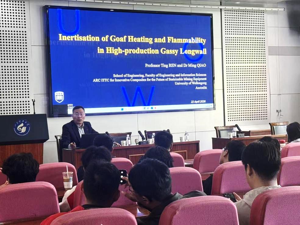 座谈会结束后,任廷祥教授为即时比分球探 师生作题为“Longwall Goaf as a Reservoir for Mine Gas Storage and Sequestration: a Novel Decarbonisation Strategy for Underground Coal Mines”的专题学术报告,介绍了利用长壁采空区实现矿井瓦斯储存与封存的技术原理与工程实践,阐述了采空区储气空间的演化特征、气体运移机制及长期密封性保障等关键科学问题,报告内容前沿务实,引发在场师生广泛思考与热烈研讨。