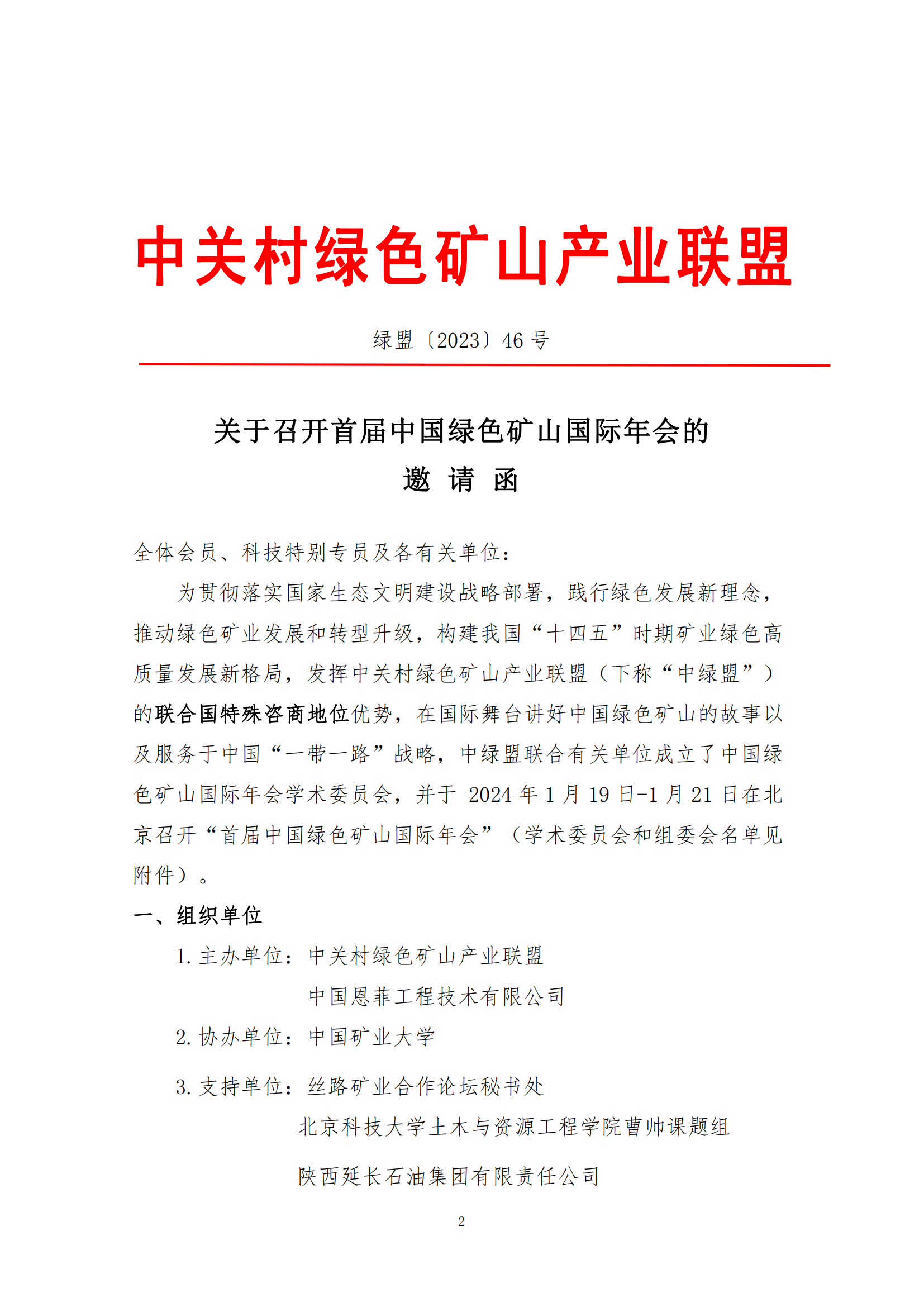 关于召开首届中国绿色矿山国际年会的邀请函