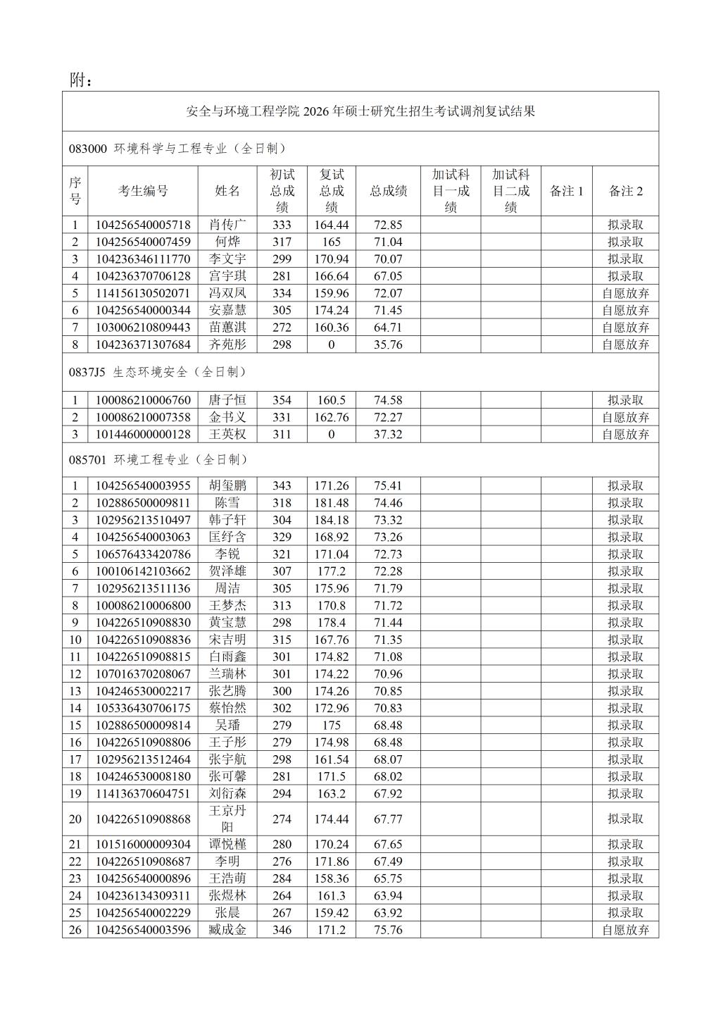 点击:根据《山东科技大学2026年硕士研究生复试录取工作方案》《即时比分球探-球探体育即时足球比分直播 2026年硕士研究生复试录取工作实施细则》要求,球探体育即时足球比分直播 组织完成2026年硕士研究生招生考试调剂复试,现将结果予以公示(名单附后)。