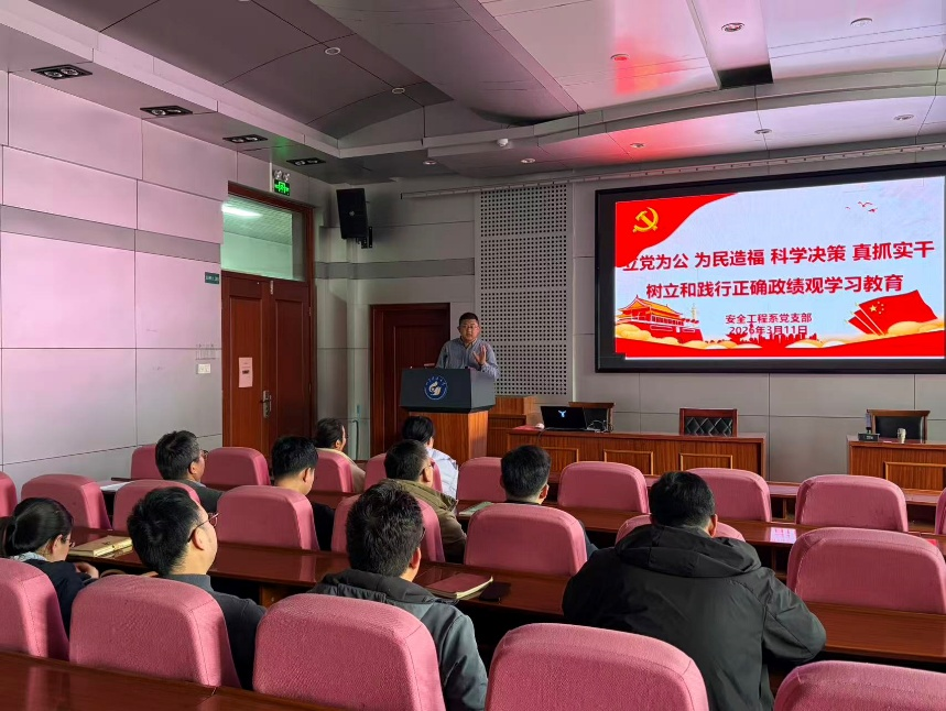 点击:2026年3月11日,安全工程系党支部在J4-319会议室组织全体党员,围绕“树立和践行正确政绩观”主题开展集体学习。本次学习由支部书记孙路路主持,支部委员杨赫带领支部全体党员深入学习了中央、山东省和学校关于树立和践行正确政绩观学习教育指示精神。