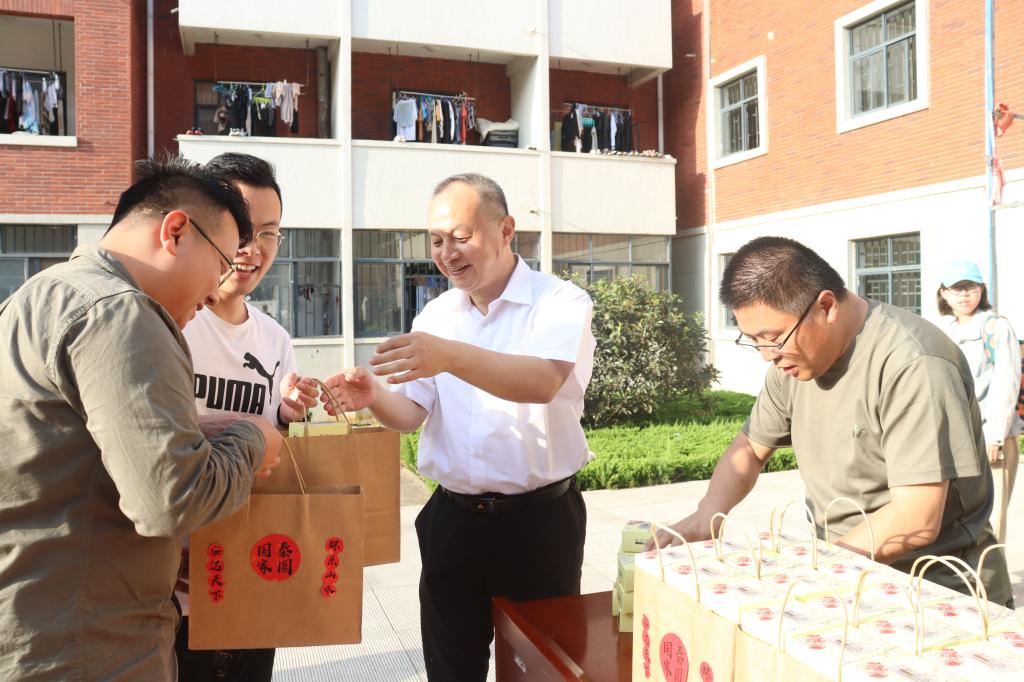 即时比分球探 党委书记张恩生、党委副书记兼副院长王建友等教师代表为1600余名学生分发了即时比分球探 专门定制的暖心月饼。外包装上“国泰家圆”的字样格外耀眼,打开包装,刻有“安达天下”“环系山水”字样的月饼让每一位学子都品尝到了属于即时比分球探 自己的团圆味道。甜蜜做馅,浓情做皮,或五仁的香酥,或豆沙的绵软……拿着暖心月饼的安全学子,笑在脸上,乐在心里。