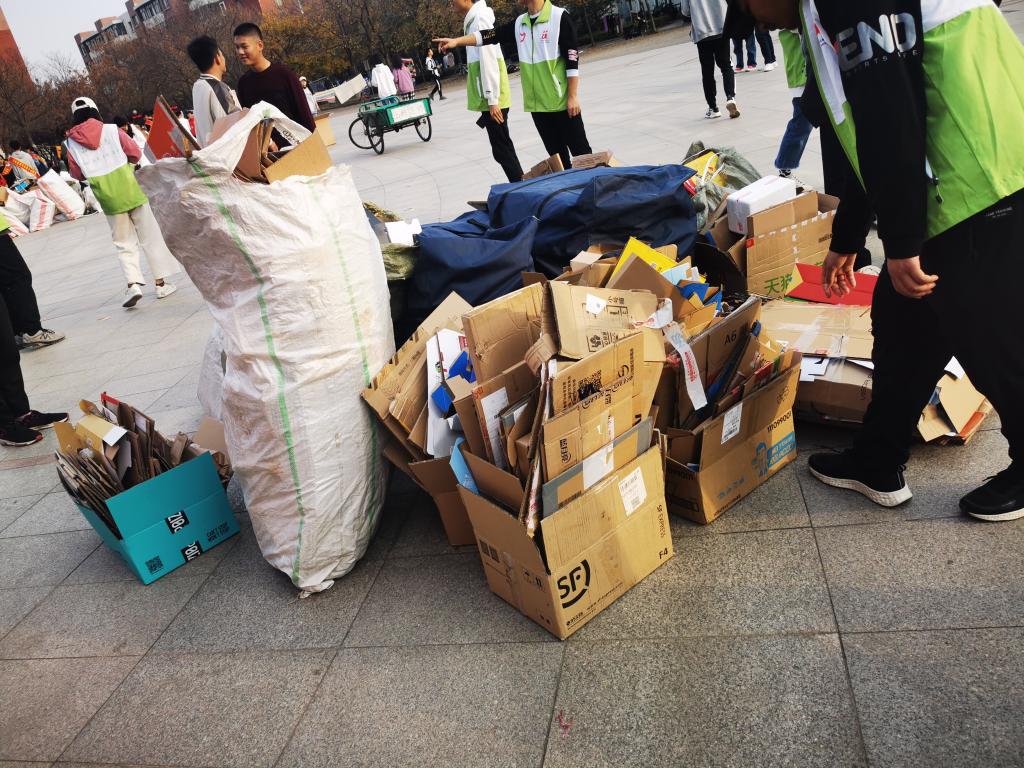 在前期的宣传工作中,同学们热情高涨,精心准备,将自己的快递盒分类归置等待活动的开始。15日下午两点,即时比分球探 青年志愿者协会派出工作人员,走进宿舍,整理打包同学们提前积攒的快递盒和塑料瓶,有序地运送到繁星广场指定地点,并将各个宿舍的回收废品数量进行记录,评选出“先进志愿宿舍”。经过即时比分球探 全体同学的共同努力,繁星广场上堆满了大大小小、色彩多样的温情纸盒。最终,GA1-148、140、132和GC2-119、122、126等宿舍获得“先进志愿宿舍”荣誉称号。