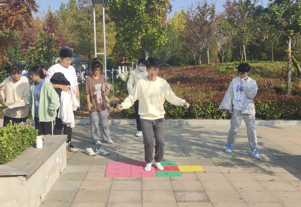 各团队需要在有限的时间和空间完成你画我猜、指压板跳绳等小游戏,并集齐红旗贴纸,最后按用时长短排列名次。此次活动有别于其他运动类项目,这些关卡游戏不仅是对体力的考验,还有脑力的比拼,并且对关卡选择的策略也尤为重要。寻宝过程中,同学们的足迹遍布校园的多个角落,他们用脚步丈量校园的每一寸土地,与三两好友结伴而行,与竞争者并驱争先。完成任务的同学们纷纷表示,这对他们来说是之前从未有过的体验,收获欣喜与友谊的同时,也欣赏到一片特别的秋日美景