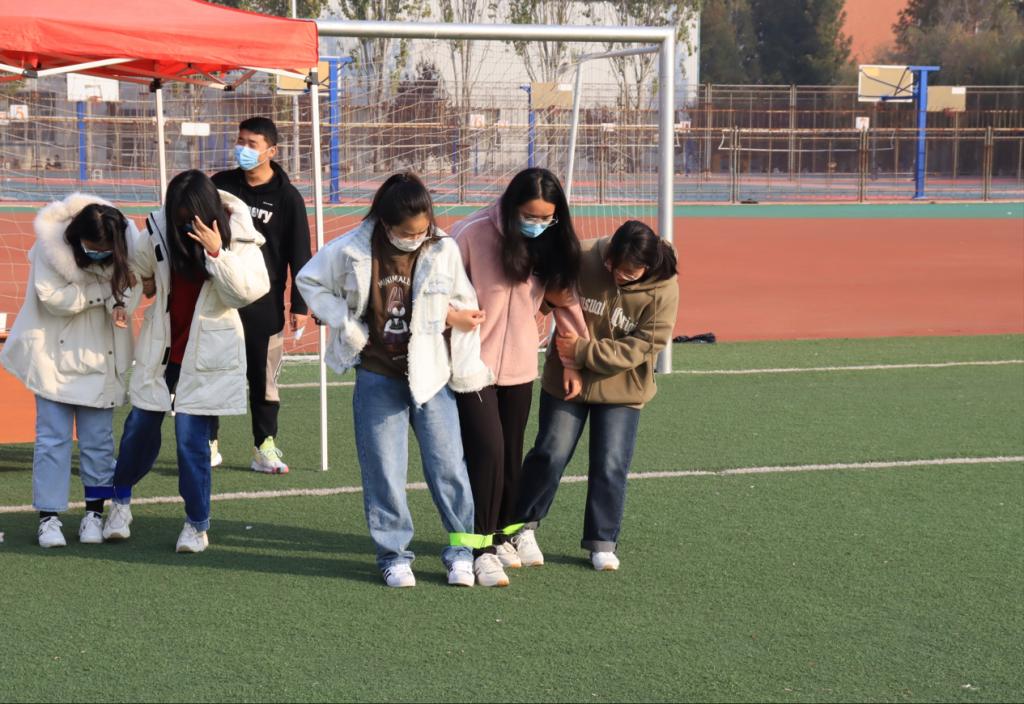 迎着秋日的朝阳,活动正式开始。“吟诵映初心--‘爱’说给你听”拉开序幕,同学们六人一队排成一条线,依次用方言传递诗句,由最后一名同学用普通话说出听到的句子。各具特色的方言一出,欢笑声顿时响彻操场,现场成了一片欢乐的海洋。“心有灵犀--共发展向未来”推动活动进入高潮,同学们两人一队,五队进行现场“你比我猜”比拼,首先猜出指定词语的队伍获胜。负责比划的同学在接收到指定词语后使用肢体语言将信息传达给同伴,丰富的表情和滑稽的动作引来围观同学的一阵阵欢声笑语。趣味横生的“其利断金——共克时艰万难”环节,又为本场活动增添更多色彩。此环节以“两人三足”形式进行,参赛小组需将盛满水的水杯运送至赛道尽头,签名标记后再原路返回,最快到达终点且杯中水最多的一组获胜。游戏中,有配合默契,健步如飞的小组;也有因为口号不一,步调凌乱而被绊倒的小组。但无论多么艰难,每一组都没有放弃,完成了比赛。整场活动中,参与游戏的同学个个全力投入,力争第一,展现了极大的个人风采和团队精神,彰显了同学们之间的凝聚力,现场气氛热烈而又紧张,扣人心弦而又不失活泼。