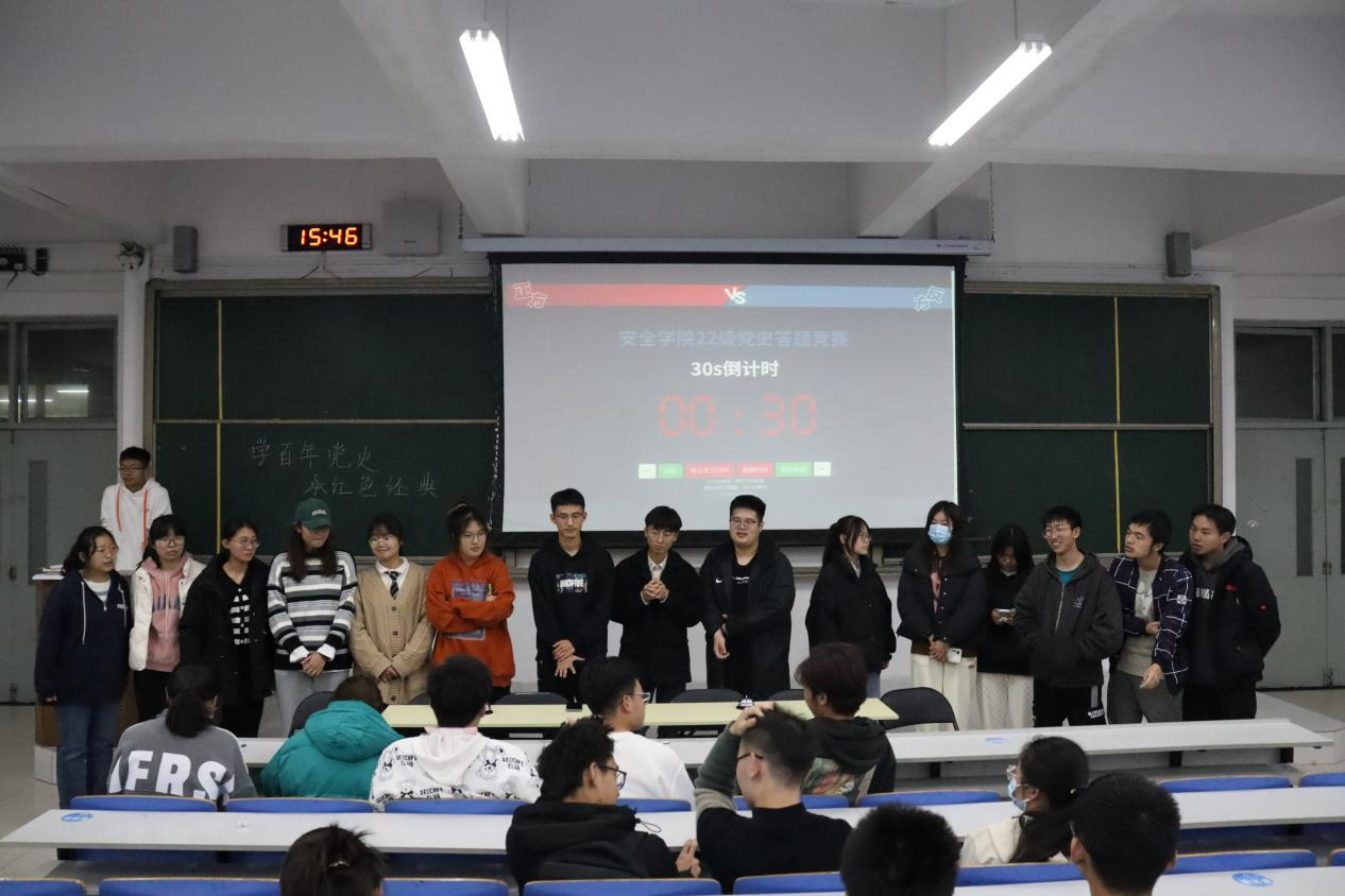 比赛分为初赛和决赛两轮,两轮暂定具体赛制相同(如报名队伍过多则初赛简化赛制)。参赛队伍两两对决,初赛筛选出合适数量的队伍,决赛通过抽签决定对决顺序,并决出一二三等奖。竞赛在紧张有序的氛围中开始。各队参赛队员在各轮环节中分工合作、踊跃竞答,展现出扎实的知识功底和良好的竞赛素养。尤其是在抢答题环节,队员们争先恐后按响抢答器,将紧张激烈的气氛推向高潮。竞赛气氛热火朝天,但在工作人员和相关负责人有条不紊的安排下,整场竞赛活动井然有序。经过紧张激烈的角逐,最终由来自安全三班的“安三第一队”队获得冠军,来自环境二班的“想对就对”队获得亚军,来自安全五班的“龙小组”队获得季军。