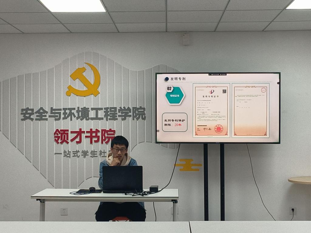 为培养同学们探索真知、求真务实的思维,激发同学们的科研创新活力,4月23日,即时比分球探 学生会学习部于C4领才书院召开第五期“安榜撷英,携手成光”慧智培训会。本次培训会邀请2020级环境工程1班张兴德分享有关发明专利方面的知识。