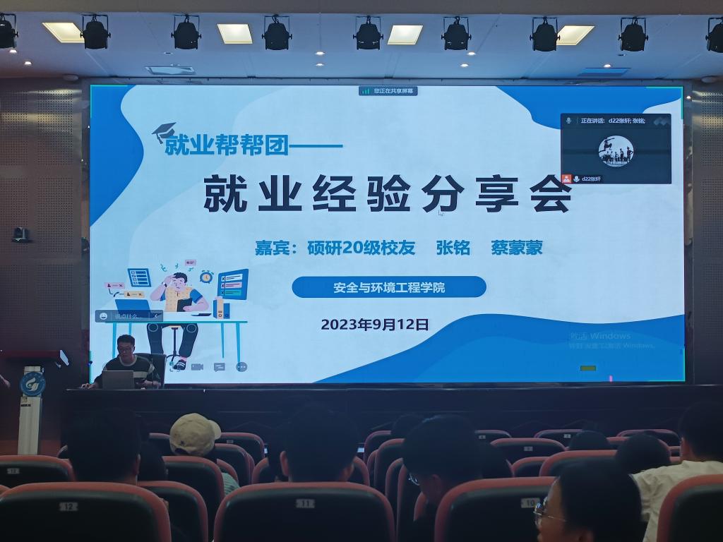 会上,张铭就明确就业目标、利用好校园招聘、拓宽就业渠道三个方面与同学们进行交流。她结合自身求职经历为同学们详细讲解了求职、入职过程中的细节,通过“工作环境”、“新员工入职活动”、“丰富的伙食”等生动的图文讲述她山东能源集团入职体验。蔡蒙蒙结合专业背景和求职经历分享了自己的职业成长感悟。她介绍了安全、能源及环境专业的就业形势和需求,建议同学们树立正确的就业观念,运用好专业优势,做好职业规划,抓紧抓牢黄金期,积极提升就业竞争力。会后,两位优秀毕业生就同学们提出的相关问题进行解答。