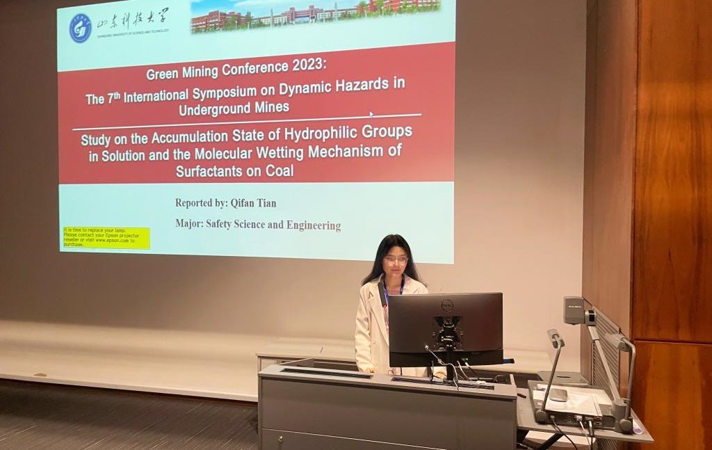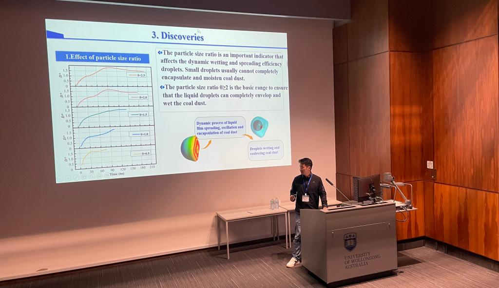 即时比分球探 博士研究生郭立典、许长炜、田起凡分别进行了主题为“Research on Dust Pollution Law of Large Mining Height Fully Mechanized Face and Development of Efficient Dust Control Technology”、“Numerical simulation study on dynamic wetting of coal dust by spray droplets”以及“Study on the Accumulation State of Hydrophilic Groups in Solution and the Molecular Wetting Mechanism of Surfactants on Coal”的学术报告,并与各国代表进行了深入的探讨交流。