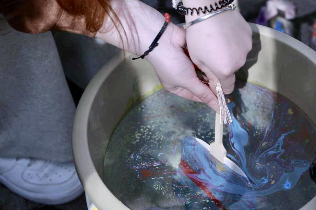 活动精心设置的四大特色体验项目,让传统民俗与春日雅趣相融。漆扇区中,同学们以扇面为纸、漆墨作画,勾勒花鸟、题写诗词,于方寸间致敬千年匠心;投壶区里,众人凝神屏息、瞄准投掷,在一招一式中切磋技艺,喝彩声此起彼伏,犹见古时“君子之争”的从容风仪;拓染区以校园花草为材,将花瓣叶片精心排布于织物之上,以小锤轻敲固色,将转瞬春景定格,正应了“草木有本心”的自然之趣;香囊区内艾草清香萦绕,同学们自主搭配香材、细心缝制装饰,将驱虫避秽、祈福纳吉的美好祝愿装入小小的香囊之中。