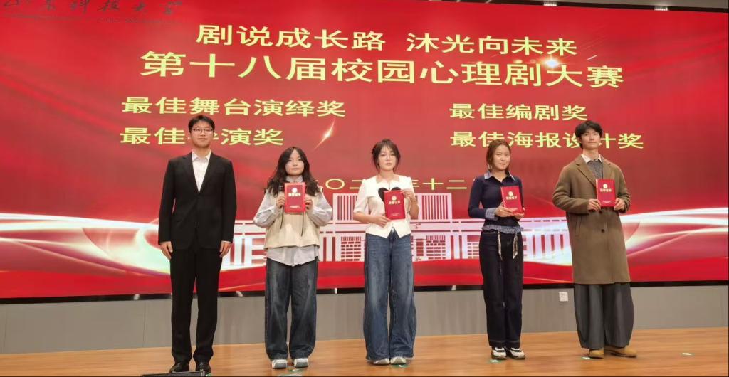 点击:12月7日“剧说成长路,沐光向未来”山东科技大学第十八届校园心理剧大赛在图书信息中心求新讲堂圆满落幕。即时比分球探 安全工程2025-1班参赛作品《苹果滚落的瞬间》以真挚的情感表达和深刻的心理内涵脱颖而出,取得了一等奖的优异成绩,尹旭获得最佳男主角奖,邓中鑫获得最佳男配角奖,房真羽获得最佳编剧奖。