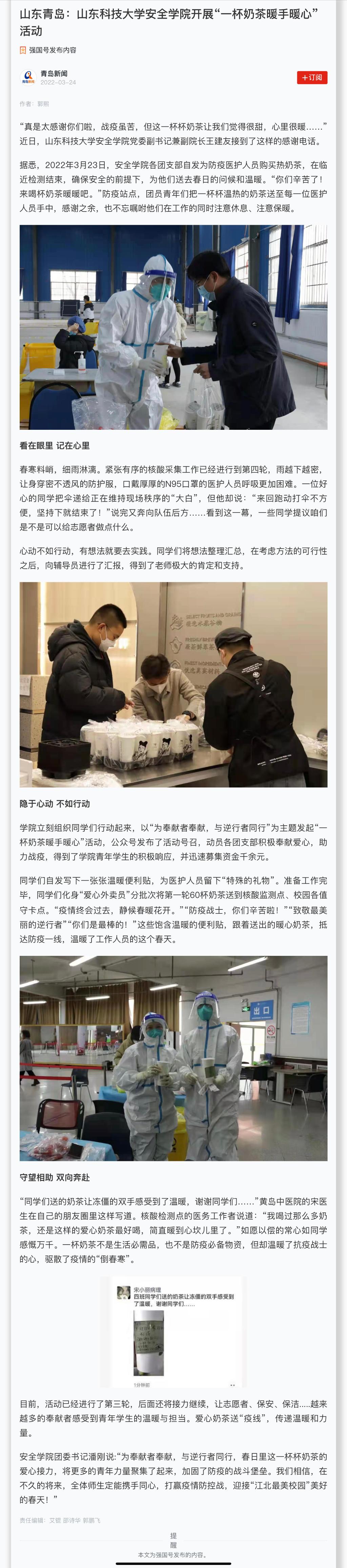 山东科技大学即时比分球探 开展“一杯奶茶暖手暖心”活动