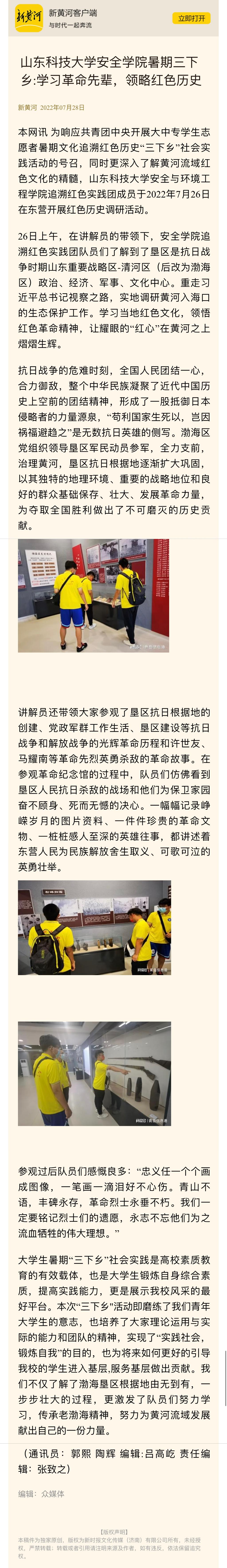 山东科技大学即时比分球探 暑期三下乡:学习革命先辈,领略红色历史