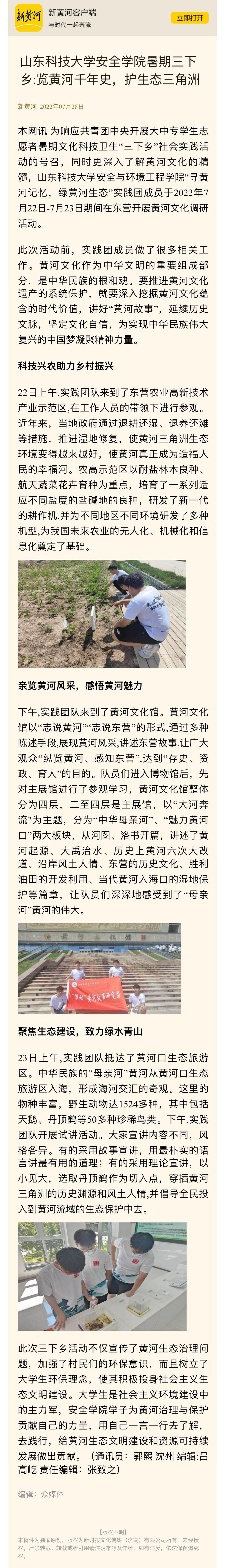 山东科技大学即时比分球探 暑期三下乡:览黄河千年史,护生态三角洲