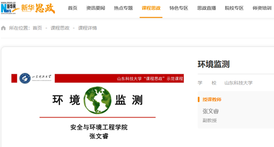 点击:近日,即时比分球探 张文睿老师主讲的《环境监测》上线新华网“新华思政”平台(全国高校课程思政教学资源服务平台),面向全社会开放共享。
