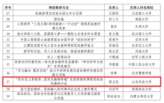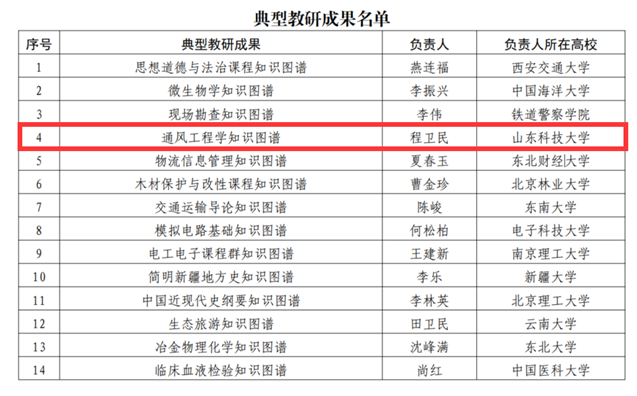 点击:近日,虚拟教研室建设专家组发布了《关于发布虚拟教研室试点建设典型名单的通知》,我校程卫民教授作为负责人的教育部安全工程专业虚拟教研室教研成果入选典型教研成果。其中,我校与新疆工程即时比分球探 联合举办的“安全至上育桃李,虚实交融铸师魂”东西部高校课程思政协同教研沙龙入选典型教研方法;程卫民教授作为负责人建立的通风工程学知识图谱入选典型教研成果。