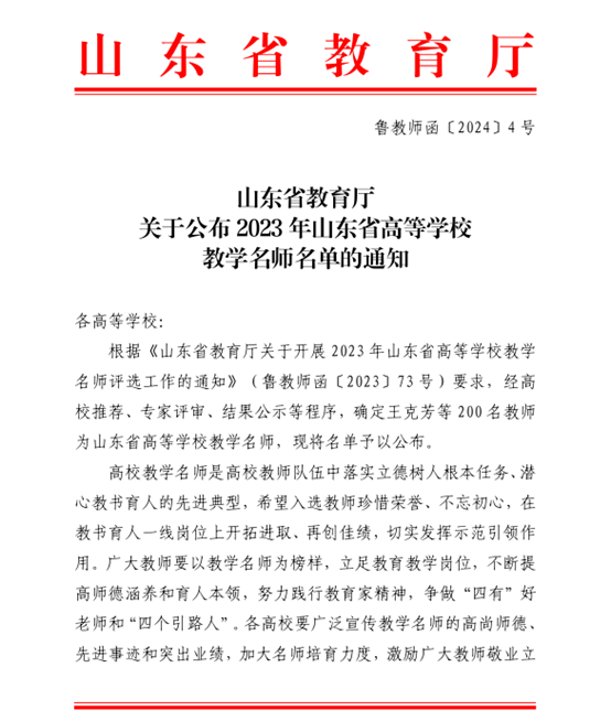 点击:日前,山东省教育厅公布2023 年山东省高等学校教学名师名单,球探体育即时足球比分直播 刘音教授成功入选。