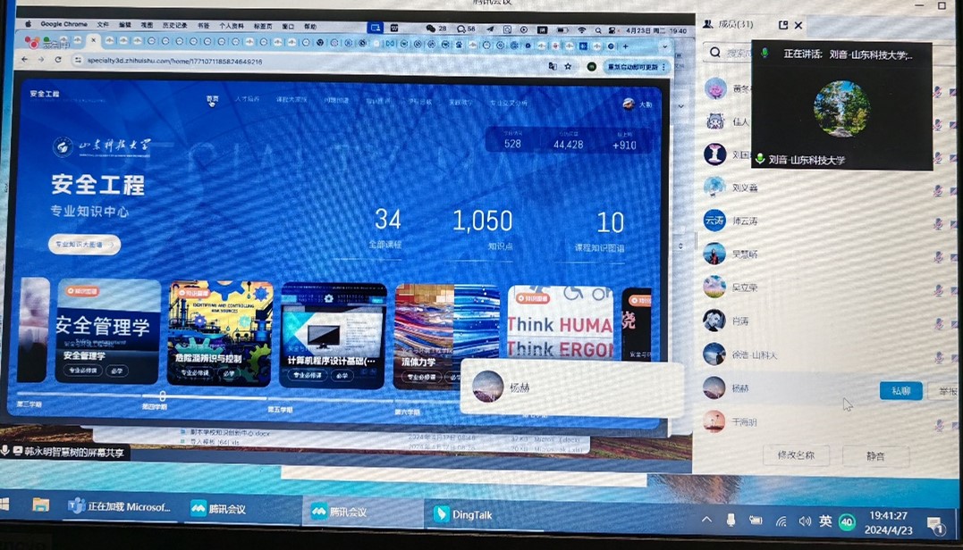 点击:即时比分球探 于4月23日19:00-20:00举办安全工程专业知识创新中心建设成果汇报会,参会人员有智慧树辛虎山、韩永明、廖伟平、张媛媛老师,以及安全工程专业课程知识图谱的建课老师。会议由教学副院长刘音主持。
