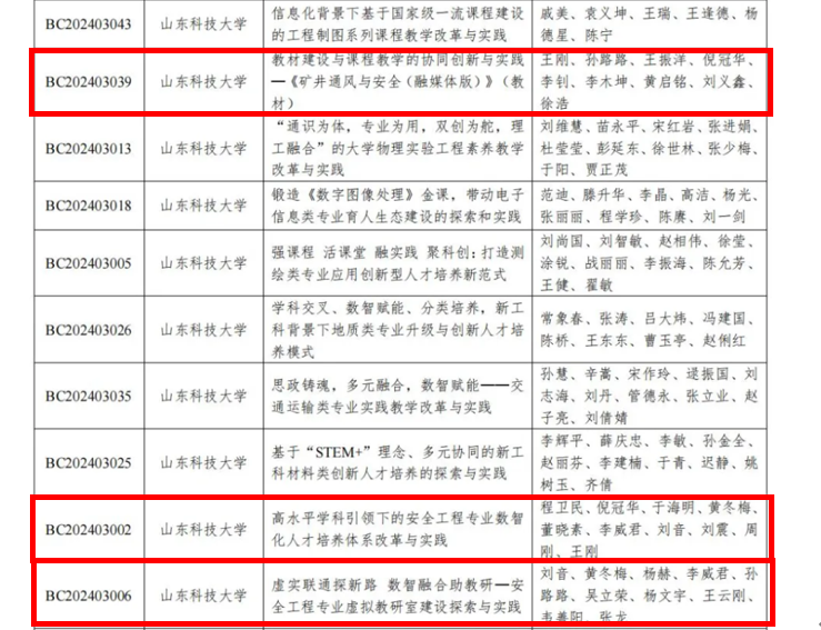 近日,中国煤炭教育协会公布了2024年全国煤炭行业教学成果获奖项目,球探体育即时足球比分直播 获2024年全国煤炭行业本科教学成果一等奖3项,二等奖1项,研究生教学成果一等奖1项,二等奖2项的好成绩。其中程卫民教授团队的《高水平学科引领下的安全工程专业数智化人才培养体系改革与实践》、王刚教授团队的《教材建设与课程教学的协同创新与实践—<矿井通风与安全(融媒体版)>(教材)》、和刘音教授团队的《虚实联通探新路,数智融合助教研-安全工程专业虚拟教研室建设探索与实践》获得本科教学成果一等奖。刘震教授团队《面向未来、强化实践、赋能安全工程专业“双创”教育新动能》获本科教学成果二等奖。胡相明教授团队的《“一核四维、双轨融合、三醒三思、多元评价”火灾科学课程体系改革探索与实践》获研究生教学成果一等奖,周刚教授团队的《“六轨同项、四链融合”安全科学与工程学科研究生人才培养模式改革与创新》和曹晓强教授团队的《“顶天立地、横纵贯通” ——国家战略牵引下的环境学科研究生培养模式创新与实践》获研究生教学成果二等奖。