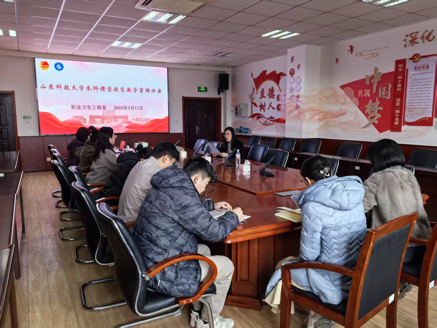 为深入贯彻落实学校教育教学改革精神,3月11日下午,职业卫生工程专业在J9-223会议室组织开展《山东科技大学本科课堂教育教学管理办法》专题学习活动。会议由系教学主任黄冬梅主持,全系教师共同参会。