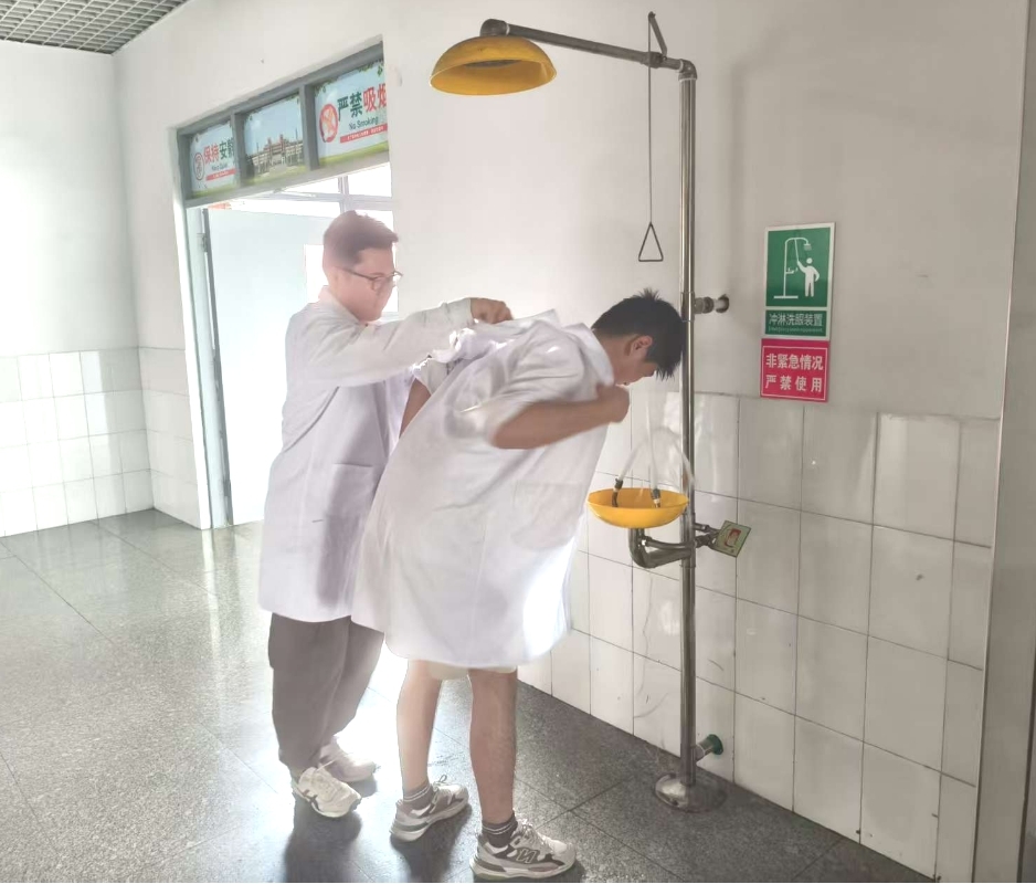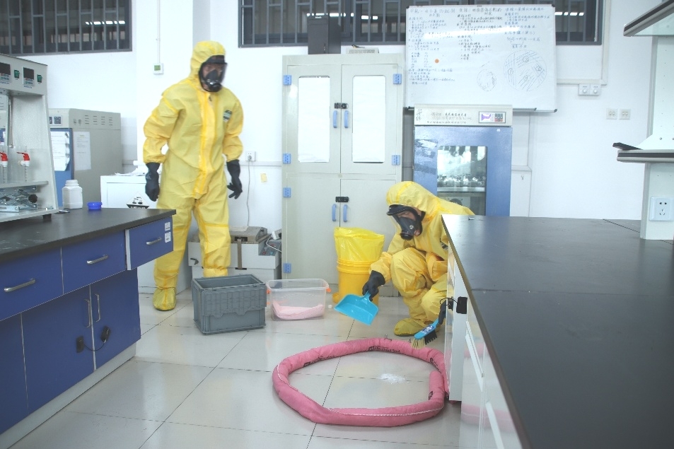 点击:为增强即时比分球探 师生的实验室安全责任意识,提升突发事故应急响应与处置能力,2025年7月8日下午,即时比分球探 实验教学示范中心以“浓硫酸玻璃容器破裂致学生眼部和身体灼伤”为主题,组织开展了有关实验室危化品泄露的应急演练。学校实验室与设备管理处副处长王鹏、综合管理科杨佳琪、即时比分球探 党委书记张恩生、副院长刘音、实验中心负责人陈静,以及实验室相关师生共同参加并观摩了应急演练。