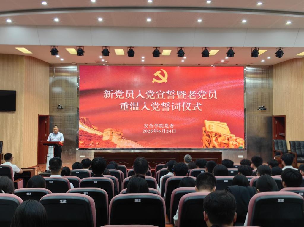 2025-07-02在七一党的生日来临之际,为强化党员意识教育,筑牢理想信念根基,激励新时代青年党员勇担使命责任,6月24日下午,即时比分球探 党委举行新党员入党宣誓暨老党员重温入党誓词仪式。即时比分球探 党委班子成员、党支部书记、全体预备党员和老党员代表参加了宣誓仪式。宣誓仪式在庄严肃穆的《国际歌》中拉开帷幕,面对鲜红的党旗,全体参会人员高举右拳,在领誓人王海山的带领下,新党员庄严宣誓,老党员重温入党誓词。在铿锵有力的誓词声中,党...