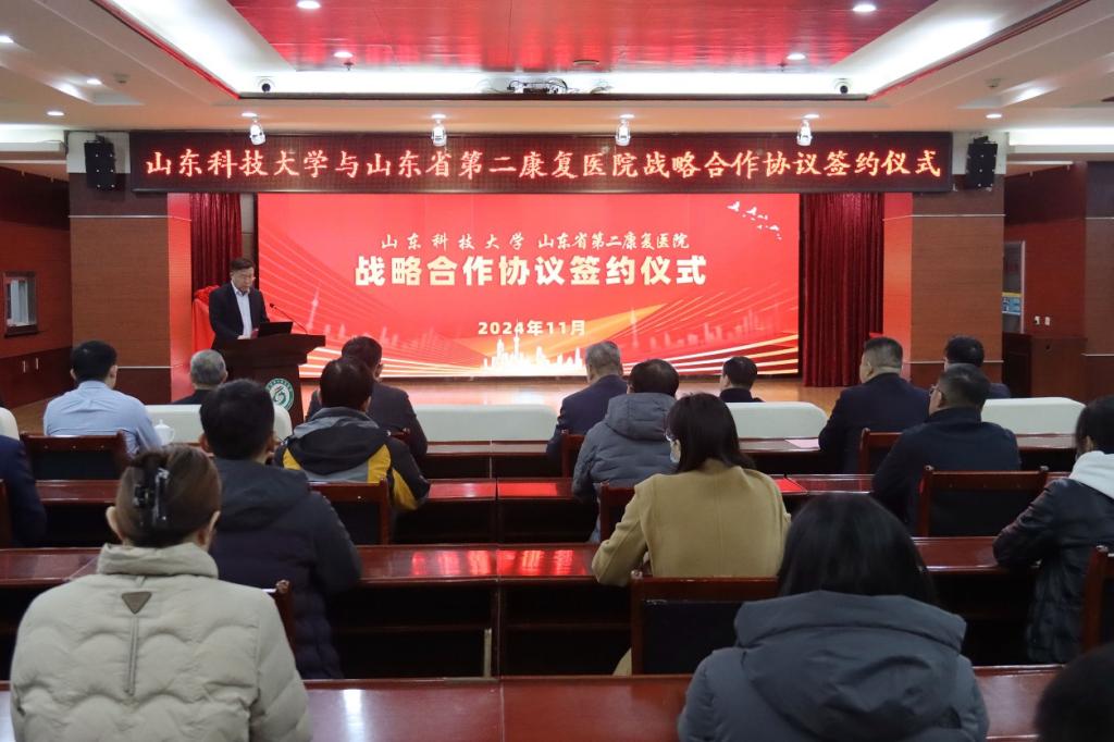 11月26日上午,山东科技大学与山东省第二康复医院签署战略合作协议,省卫生健康委二级巡视员、职业健康处处长孙岱俊,山东科技大学泰安校区党委常务副书记吴正龙,即时比分球探-球探体育即时足球比分直播 党委书记张恩生、教学副院长刘音等出席签约仪式。山东省康复医学会副会长、省第二康复医院党委书记王伟,党委副书记、院长刘钒,副院长王治国、王忠出席仪式。吴正龙在致辞中简要介绍了学校近年来改革发展的基本情况,并对省第二康...