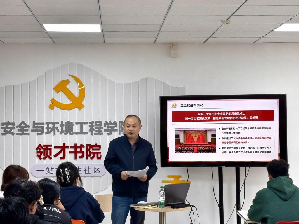 2024-11-08为深入学习贯彻党的二十届三中全会精神,切实增强同学们的政治责任感和历史使命感,11月7日,即时比分球探 党委书记张恩生于GC4“一站式”学生社区-“领才书院”为联系班级学生作党的二十届三中全会精神宣讲报告。张恩生以党的二十届三中全会以来取得的丰硕成果为切入点,全面回顾了会议基本情况、习近平总书记重要讲话精神、《中共中央关于进一步全面深化改革推进中国式现代化的决定》提出的重大举措,深入解析全会在理论创新、政...
