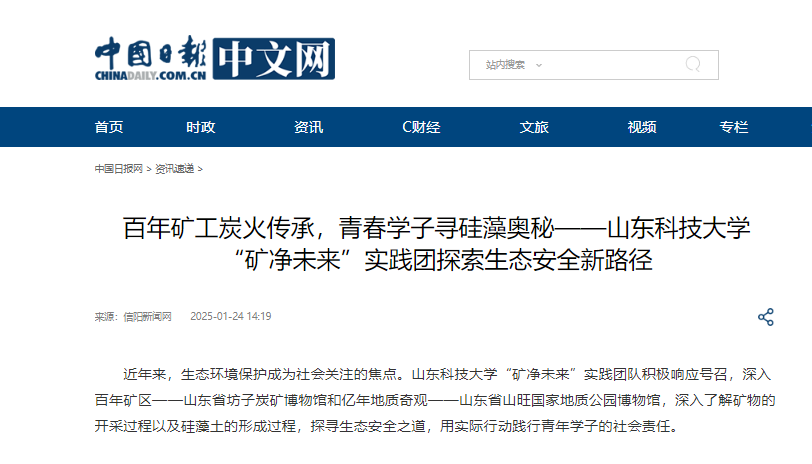 百年矿工炭火传承,青春学子寻硅藻奥秘——山东科技大学“矿净未来”实践团探索生态安全新路径