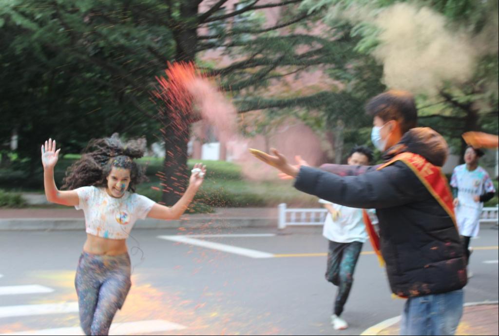 发令枪响,参赛选手精神饱满、步伐矫健,在志愿者引导下有序出发。沿途彩粉飞扬,如绚烂云霞,伴跑青春征程。同学们在奔跑中展现朝气,在阳光下绽放笑容,以昂扬姿态奔向终点,生动诠释了青春最美的风采。跑道终点,彩粉互动环节将现场气氛推向高潮,同学们相互泼洒的彩色“快乐”映衬在一张张“花脸”上,让此次活动成为这个秋日最生动的青春注脚。参与活动的学生纷纷表示,这次校园跑不仅是一场体育赛事,更是一次难忘的青春体验。“整个过程虽然累,但特别释放压力,也结识了很多新朋友。在彩粉中奔跑,在欢笑中前行,让我真切感受到了运动的快乐和集体的温暖。”校马拉松协会成员崔柏闻说道。